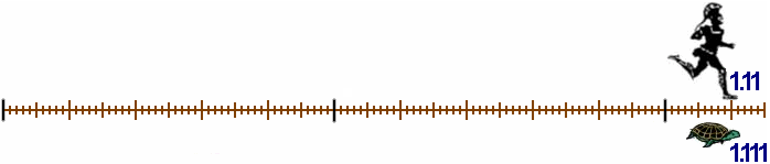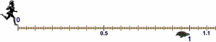 Quando Achille avanza di altri 0.1 km raggiungendo la posizione che prima aveva la tartaruga, a 1.1 km dalla posizione iniziale, questa è avanzata di 0.01 km.