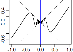 La funzione F rappresentata a destra (F(0)=0, F(x)=cos(1/x)*x per x≠0) è continua in