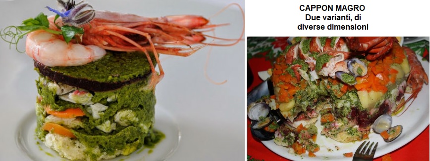 Il Cappon magro è un famoso piatto ligure composto da strati di pesce cappone, gallette, verdure varie, acciughe salate,