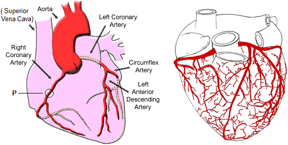 Il punto P corrisponde al luogo in cui più frequentemente può verificarsi una trombosi coronarica.