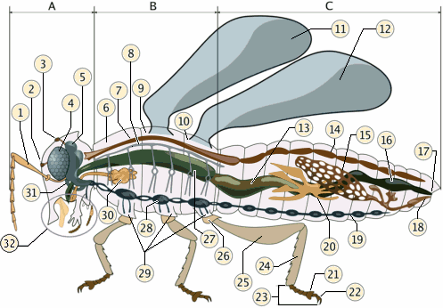 A-Capo B-Torace C-Addome