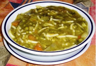 I suoi ingredienti sono verdure di stagione (patate, zucchine, fagiolini, melanzane, boraggini, carote, ), legumi e pasta, in genere i "bricchetti", che viene buttata dopo una lunga cottura, quando il tutto è bello spesso, nonché (versati a cottura ultimata) olio e l'indispensabile "pesto" (con eventuale aggiunta di parmigiano). A volte si fanno cuocere col minestrone anche delle croste di parmigiano (che diventano "eccezionali"). Viene servito tiepido. Specie in estate, viene servito anche freddo.