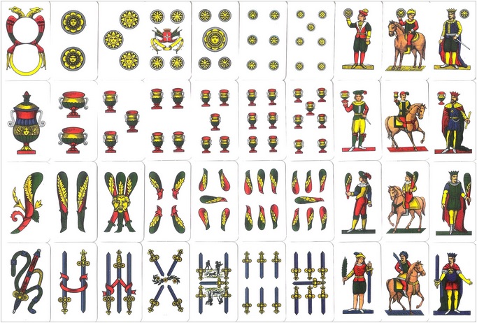 Le carte chiamate "napoletane" (quelle "francesi" hanno come semi ♦, ♥, ♣, ♠).