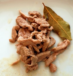 Piatto ligure tipico (in Toscana in modo simile si cuociono i fagioli cannellini) di facile esecuzione: si "strappano" (non "tagliano") delle fettine di carne di vitello a pezzetti e le si cuociono una decina di minuti in un tegame in cui sono stati messi olio, aglio e, dopo un po', foglie di alloro. Durante la cottura, a fuoco vivo, si spruzza la carne con mezzo bicchiere di vino bianco, facendolo evaporare. In modo simile possono essere cotti anche altri tipi di carne (anche di pollo e di coniglio).
