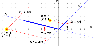 Nel piano X,Y il punto è (3/5,2/5) e verrebbe trasformato in (-2X, 3Y) = (6/5,6/5).