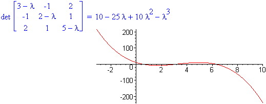 Nell'esempio 1, risolvendo (2-λ)(5-λ)-4 = 0 trovo gli autovalori λ1 = 1 e λ2 = 6.