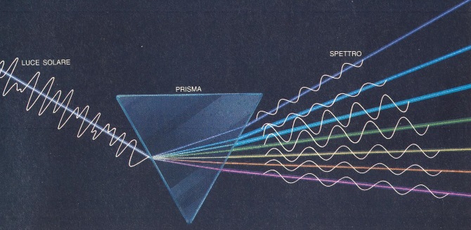risulta separata spazialmente in colori puri, cioè in frequenze. Un colore è tanto più forte