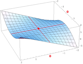 | Dai grafici all'inizio del paragrafo cerca di dedurre quanto valgono le derivate rispetto ad x e rispetto ad y di F in (3, 0) e controlla la risposta calcolandole. È un punto di massimo, di minimo o di sella? |
