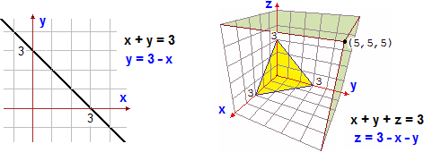 A destra è rappresentato il piano x+y+z = 3, che è grafico della funzione