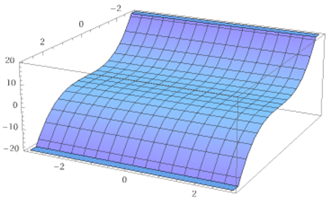 | plot z = -x^3, x from -3 to 3, y from -3 to 3, z from -20 to 20 view from(4,2,1.5) |