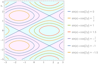 Consideriamo F(x,y) = sin(x) + cos(2 y)