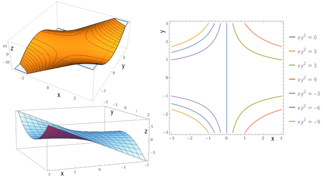 Parto da un esempio: la funzione F: (x,y) → x·y². La rappresento graficamente con del software. Continuo ad usare il gratuito WolframAlpha. Poi cercherò di capire come potrei studiarne le caratteristiche senza ricorrere ai grafici.