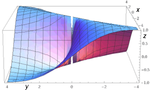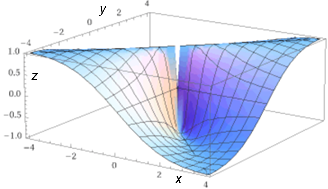 plot z = 2*x*y/(x^2+y^2), x from -4 to 4, y from -4 to 4, z from -1 to 1 view from(-4,0,1) | ||||