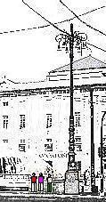 | A lato è riprodotta una fotografia scattata in piazza De Ferrari a Genova; sulla destra la riproduzione è stata realizzata in modo da evidenziare meglio alcuni contorni. Il tetto a punta che si scorge sullo sfondo raggiunge un'altezza di quasi 40 metri. Valuta quanto è alto il palo che si vede in primo piano, scegliendo tra una delle seguenti risposte. | ![]() |