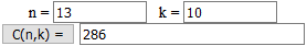 O potrei usare altro software, ad esempio WolframApha, con i comandi choose(13,10) (o choose(13,3)).