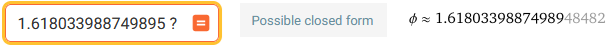 Le uscite si stabilizzano su 1.618033988749895. Proviamo a vedere se esso ha qualche particolarità. Ricorriamo a WolframAlpha. Ottengo: