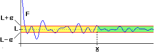 | "comunque fissi un numero positivo ε posso trovare un valore x tale che per ogni input x ad esso superiore l'output F(x) disti da L meno di ε".