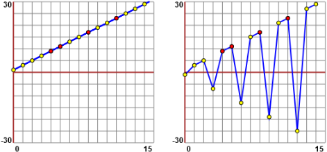Alcuni elementi della successione generati con la seconda regola: -1, 3, 5, -7, 9, 11, -13, 15, 17, -19, 21, 23, -25, 27, 29, -31, 33, 35, -37, 39, 41, -43, 45, 47, -49, 51, 53, -55, 57, 59, -61, 63, 65, -67, 69, 71, -73, 75, 77, -79, 81, 83, -85, 87, 89, -91, 93, 95, -97, 99, 101, ...