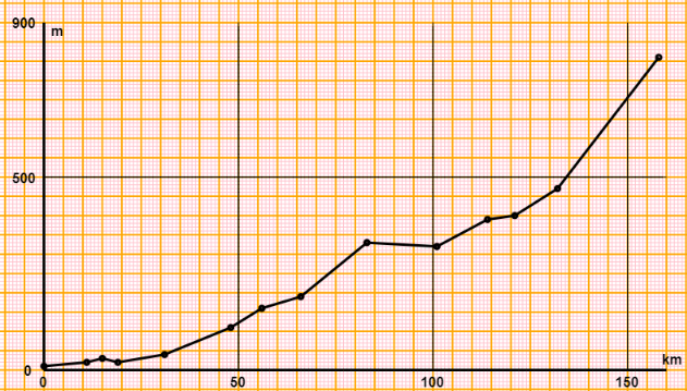 A fianco sono indicate le altitudini delle stazioni ferroviarie lungo la linea