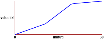 Il tratto finale ha invece una leggera pendenza. Schizza il grafico della velocità di Maria in funzione del tempo. b) Luigi scende in slitta lungo una collina innevata. A lato è rappresentato il grafico della sua velocità in funzione del tempo. Descrivilo a parole. | ![]() |