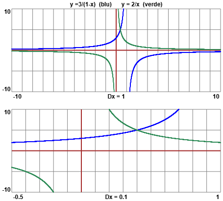 due funzioni in x che sono a primo e a secondo termine (a destra i grafici, che per comodità sono