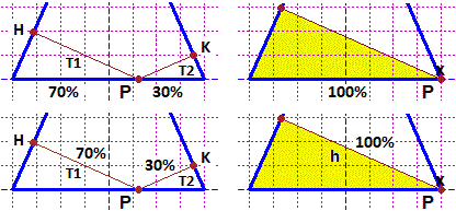 Abbiamo dunque che la lunghezza della spezzata HPK è sempre eguale a quella che ha nel caso raffigurato sopra a destro in giallo, cioè ad h. Come faccio a trovarne il valore?