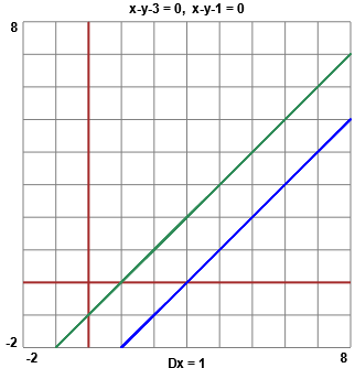 • Di fronte al sistema y-x-3 = 0 & y - x - 1 = 0 posso tracciare i grafici delle due rette (rappresentazione grafica sopra a destra, ottenuto con questo script) per