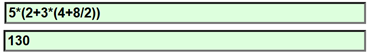5·(2+3·(4+8:2)) = 5·(2+3·(4+4)) = 5·(2+3·(4+4)) = 5·(2+3·8) = 5·(2+24) = 5·26 = 10·13 = 130