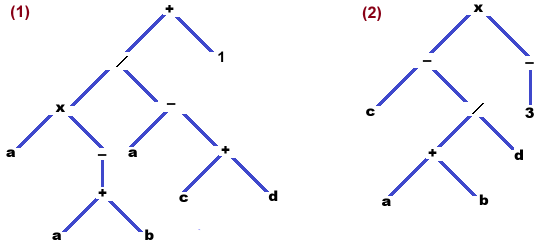 Scrivi i termini la cui struttura è rappresentata dai grafi ad albero seguenti (usando le convenzioni sulla priorità per ridurre il numero delle parentesi):