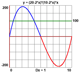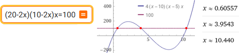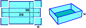 Mi esprimo in cm. V = AreaBase·Altezza = (20-2x)(10-2x)x