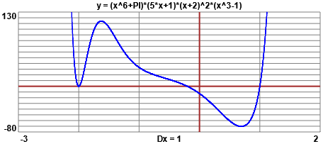 vedi qui plot (x^6+PI)*(5*x+1)*(x+2)^2*(x^3-1) plot (x^6+PI)*(5*x+1)*(x+2)^2*(x^3-1)=0 |