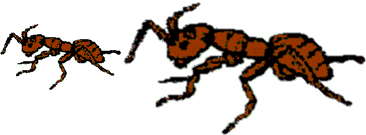 | Due formiche, che supponiamo identiche per forma e sostanza, sono una di lunghezza doppia dell'altra. Determina il rapporto tra i loro pesi e quello tra le forze che sono in grado di esercitare. | ![]() |