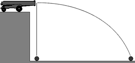 | Un castello sorge in una zona pianeggiante. Sulle sue mura è posto un cannone, con la canna orizzontale. Quale, fra una palla di cannone sparata ad alta velocitą ed una lasciata cadere dalla bocca del cannone, impiega pił tempo ad arrivare al suolo? Perché? | ![]() |