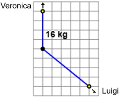 Veronica e Luigi (rappreentati dai pallini gialli) tirano, usando due diverse funi, una barca (rappresentata dal pallino nero). Veronica esercita una forza di 16 kg. Quanto è intensa la forza esercitata complessivamente dai due ragazzi?