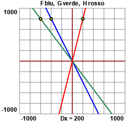 Ad ogni giro di A la ruota B ne fa 2 in senso opposto (in quanto il suo raggio, e quindi la sua circonferenza, viene divisa per 2): F è la funzione corrispondente. Il rapporto tra il diametro di C e quello di B è 3/2, quindi la rotazione di C ha una velocità pari a 2/3 di quella di B, e ne ha lo stesso verso: G è la funzione corrispondente (a x associa -4/3x). Il rapporto tra il diametro di D e quello di C è 1/3, quindi la rotazione di D ha una velocità pari a 3 volte di quella di C, e verso opposto: H è la funzione corrispondente (a x associa 4x).