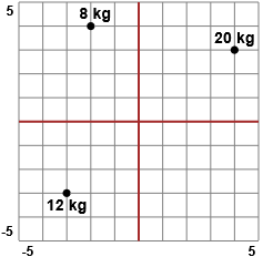 delle tre masse disposte nel piano raffigurate a fianco (l'unità di misura delle lunghezze è il metro)?