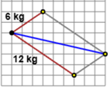 Il vettore che rappresenta la forza esercitata da Maria è lungo la metà di quello che rappresenta la forza (di 12 kg) esercitata da Sonia. Quindi la forza esercitata da Maria è di 6 kg.