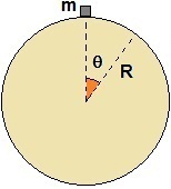 | Un corpo di massa m è appoggiato su una sfera di raggio R come mostrato in figura; supponiamo che il corpo sia di dimensioni trascurabili. Il corpo inizia a scivolare senza attrito sulla superficie della sfera. Calcola l’altezza rispetto al suolo alla quale il corpo si stacca dalla superficie della sfera. | ![]() |