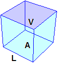 di liquido che essa può contenere. Nella figura a sinistra le lettere L, A e V