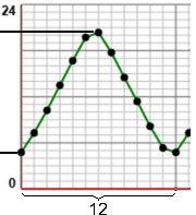 • All'inizio di Luglio il dì è di circa 20 ore e mezza. All'inizio di Gennaio è di circa 4 ore e mezza. • A Genova la differenza tra durata massima e durata minima del dì è molto minore; vedi sotto un grafico approssimativo. All'equatore è 0: il dì e la notte durano sempre 12 ore. • Il grafico si ripete in forma uguale ogni 12 mesi, rappresentati da 12 quadretti. ![]() |