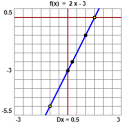 Considera la funzione h che x associa 2x−3. (a) All'input 1 la funzione h assegna il valore . Si scrive allora (b) Trova h(−1), h(1/4), h(0), h(3/2), riempi la tabella seguente e costruisci il grafico di h. | |||||||||||||