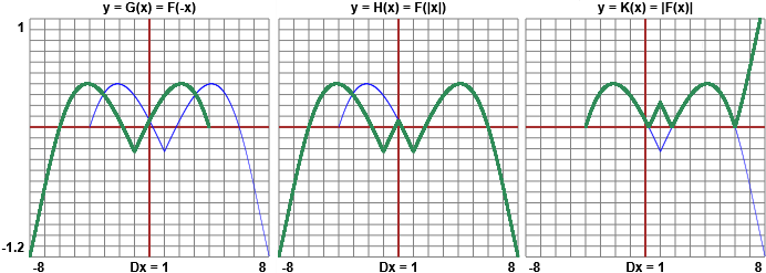 Nel terzo caso il dominio resta invariato e il grafico si ottiene ribaltando la parte sotto all'asse x attorno allo stesso asse.