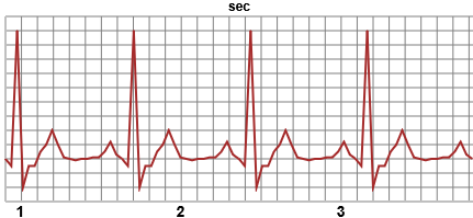 | Dal seguente elettrocardiogramma ricava il ritmo cardiaco (in battiti al minuto) che aveva il paziente esaminato | |