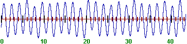 | Considera il seguente elettroencefalogramma (le divisioni rappresentano centesimi di secondo). Qual è approssimativamente il periodo delle oscillazioni di potenziale elettrico delle cellelule nervose cerebrali del paziente esaminato (qui "periodo" è da intendere in senso lato, come se le oscillazioni fossero tutte uguali). | |