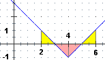 F ha per grafico quello della funzione valore assoluto traslato a destra di 4 e in basso di 1. Per simmetria, l'integrale tra 2 e 4 è uguale a quello tra 4 e 6. L'integrale tra 2 e 3 e quello tra 3 e 4 sono l'uno l'opposto dell'altro; infatti in [2,4] il grafico è simmetrico rispetto a (3,0), ovvero i triangoli (2,1)-(3,0)-(2,0) e (3,0)-(-1,4)-(0,4) hanno uguale area e stanno da parti opposte rispetto all'asse x; quindi l'integrale tra 2 e 4 è 0, e quindi lo è l'integrale tra 2 e 6. |  |