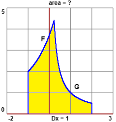 Calcola l'area della figura evidenziata a fianco, dove i grafici tracciati parzialmente sono quelli delle funzioni