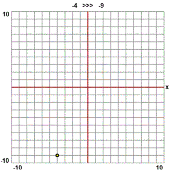 Osserva la animazione qui a destra, che rappresenta come a vari numeri (chiamiamoli x) viene associato un certo valore. Alla fine viene rappresentato il grafico di una "funzione" (ossia un modo generale per associare un output ad un input) che passa per tutti i punti via via rappresentati dalla animazione. Prova ad individuare che cosa viene associato ad un generico numero x. Cerca di esprimere ciò con un termine (come, per esempio, x + 5, 3·x - 4, ...). |