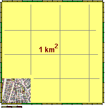Oppure potevamo trasformare le risposte in m2 e confrontare esse con 60000 m2. Potevamo fare anche una stima in altro modo: pensare che 1 km2 è un quadrato di lato 1 km. La nostra zona ha lati pari circa a 1/4 di km, ossia a 1/16 di km2. Fra i valori indicati (B) è l'unico che moltiplicato per 16 fa circa 1. Potevamo anche arrivare a questa conclusione mediante una stima immediata, cercando di immaginare la nostra zona all'interno di tale quadrato (vedi figura a lato). In ogni caso dovevo escludere subito D ed E con un ragionamento di buon senso: sicuramente notevolmente inferiore a 1 km² in quanto molto pi piccola di un quadrato di 1000 m. | ![]() |