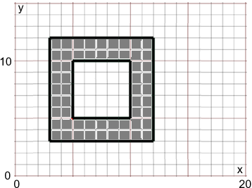 il quadrato con i vertici nei punti (3,3), (12,3), (12,12), (3,12) meno il quadrato con i vertici nei punti (5,5), (10,5), (10,10), (5,10).