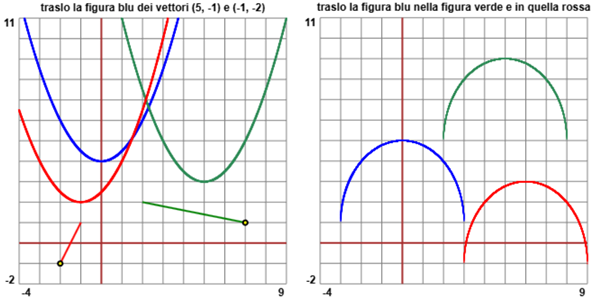 Come si vede nella figura qui a sinistra, la curva verde è stata ottenuta da quella blu traslandola di 5 a destra e di 4 in alto,